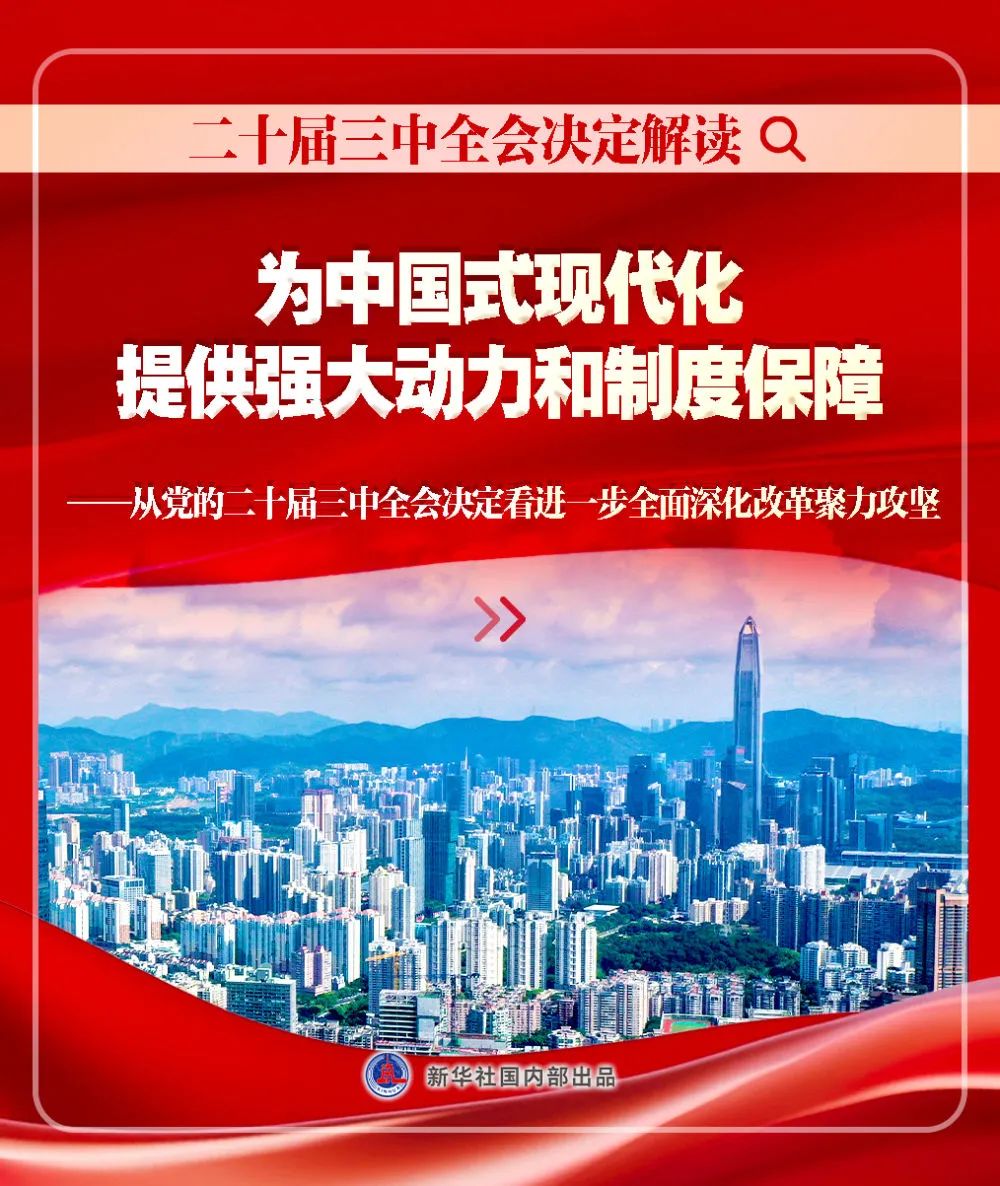 7月21日,《中共中央關于進一步全面深化改革、推進中國式現代化的決定》發布。新華社推出一系列解讀報道,深入闡釋黨的二十屆三中全會決定。點擊海報,閱讀全文↓↓