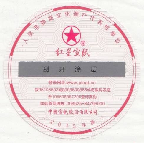 ??為更好地保護消費者權益,維護紅星宣紙市場,我公司再次升級改版防偽標識,預計2015年7月啟用新防偽標識。