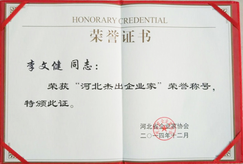 近日,由河北省企業家協會傳來消息,中太建設集團名譽董事長李文健榮獲“河北杰出企業家”榮譽稱號。