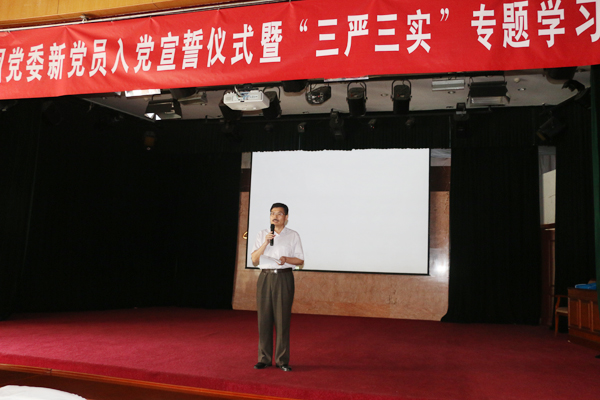 講座開始前,集團(tuán)黨委副書記鐘崇鶴同志就本次黨員學(xué)習(xí)教育專題講座的意義進(jìn)行了闡述,并代表集團(tuán)黨委對新黨員提出了希望,就黨員管理人員如何“踐行‘三嚴(yán)三實(shí)’、打造高效團(tuán)隊(duì)”提出了要求。鐘崇鶴同志指出,新黨員是各級黨組織的新鮮血液,也是在黨的事業(yè)和中太各項(xiàng)工作中涌現(xiàn)出來的優(yōu)秀分子。在此,我代表集團(tuán)黨委向新黨員同志們提出五點(diǎn)希望和要求:一是希望新黨員要不斷增強(qiáng)入黨的光榮感和責(zé)任感,堅定對黨的信念,要把為人民服務(wù)的宗旨牢記在心;二是要始終以黨員的標(biāo)準(zhǔn)規(guī)范嚴(yán)格要求自己,不但在組織上入黨,還要在思想上入黨,使自己真正成為合格的共產(chǎn)黨員;三是在工作崗位中,以身作則,率先垂范,起先鋒模范作用,具有高尚的職業(yè)道德,忠于職守,正確履行自己的崗位職責(zé);四是要不斷學(xué)習(xí),提升自己的履職能力和素質(zhì),只有不斷加強(qiáng)政治理論和業(yè)務(wù)知識的學(xué)習(xí),才能具有較高的政治理論素質(zhì)、堅定正確的政治方向;五是嚴(yán)格要求自己,不斷提高自己保護(hù)和防范能力,從自我做起,從小事做起,在今后工作中,嚴(yán)守黨的紀(jì)律,更好的發(fā)揮黨員先鋒模范作用。