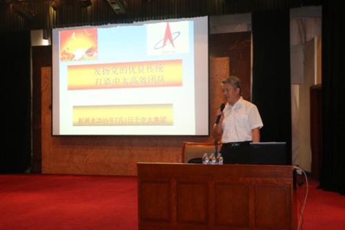 北京青年創(chuàng)業(yè)基地導(dǎo)師趙昶水同志概括地講解了中國共產(chǎn)黨建黨95周年的發(fā)展歷史和輝煌成就;并從中太的發(fā)展歷史與抗震救災(zāi)和胡錦濤同志視察中太等典型例子講解了中太品牌文化(召之即來,來之能戰(zhàn),戰(zhàn)之能勝)的內(nèi)涵;從職業(yè)精神、職業(yè)能力、職業(yè)水平、職業(yè)操守到學(xué)習(xí)力、凝聚力、行動(dòng)力、創(chuàng)新力的“四個(gè)力”,再到落實(shí)執(zhí)行力的十個(gè)度,即(態(tài)度,喜歡單位,尊重領(lǐng)導(dǎo),熱愛工作;速度,兩天的事情一天完成;力度,全力以赴;高度,高標(biāo)準(zhǔn)、嚴(yán)要求;深度,一深入就具體,一具體就深入;角度,找好工作的切入點(diǎn);廣度,全面看問題,綜合解決問題;精度,實(shí)施精良管理,細(xì)節(jié)決定成敗;尺度,做人講原則,做事講規(guī)則;韌度……)等內(nèi)容。就如何做好合格黨員,爭當(dāng)優(yōu)秀共產(chǎn)黨員,在“兩學(xué)一做”學(xué)習(xí)教育活動(dòng)中起好模范帶頭作用做了一場(chǎng)精彩的演講。
