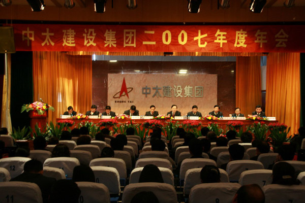 2008年元月16日,中太建設(shè)集團(tuán)隆重召開了2007年度工作總結(jié)、表彰大會(huì)。公司下屬各單位行政一把手、支部書記,總部及各事業(yè)部機(jī)關(guān)全體人員,先進(jìn)單位代表、先進(jìn)生產(chǎn)(工作)者及部分記功代表共240余人參加了大會(huì)。