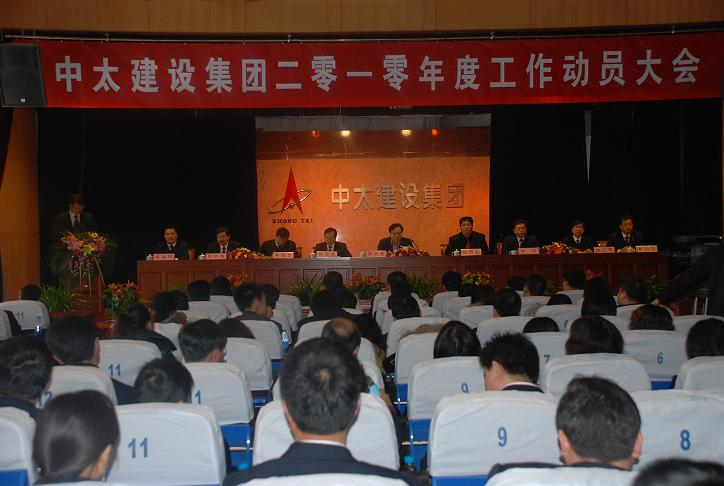 3月8日上午,中太建設集團在大廈二樓報告廳隆重召開2010年度工作動員大會。集團董事局主席、黨委書記李文健做重要講話(全文另發)?偛脧埫鞫Y做了題為《堅定信念、揚帆起航、為圓滿完成2010年的各項目標任務而努力奮斗》工作動員報告(全文另發);集團公司領導楊剛、林維生、張心忠、鐘崇鶴、楊則剛、李春陽在主席臺就座。大會由集團副總裁劉啟友主持。