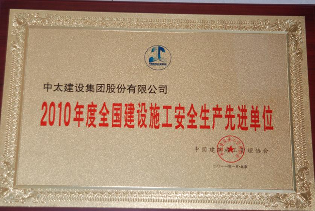 集團公司榮獲“2010年度全國建設施工安全生產(chǎn)先進單位”榮譽