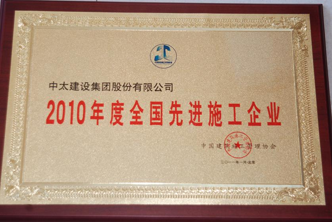 集團公司榮獲“2010年度全國先進施工企業(yè)”榮譽