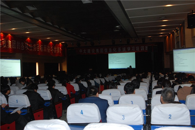 4月1日,集團公司在中太大廈二樓報告廳舉辦為期兩天的施工總承包企業(yè)特級資質信息化培訓班。公司副總裁劉啟友做開班動員講話。副總裁楊剛、張國棟主持。總裁辦公室網絡管理員王永安授課。