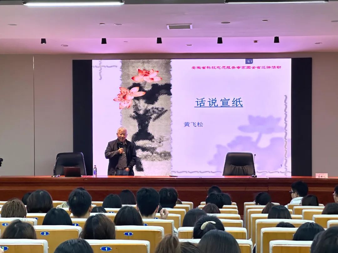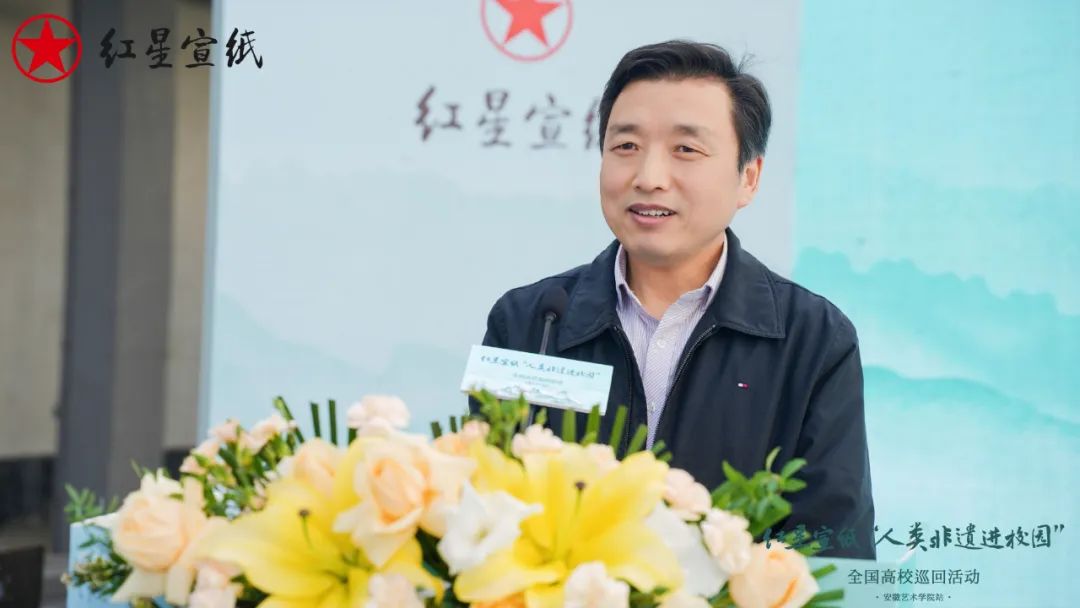 安徽藝術學院副院長、省美協主席陳林上臺講話,表明宣紙是最具中國文化特色的中國書畫藝術最重要的載體。宣紙制作技藝一千多年的傳承發展史,見證了中國優秀傳統文化藝術的繁榮興盛。此次活動校企兩方的密切合作,是為共同打造特色學校與特色學科,同時發揮高等教育社會服務職能,進一步擦亮中國宣紙這個金字招牌。