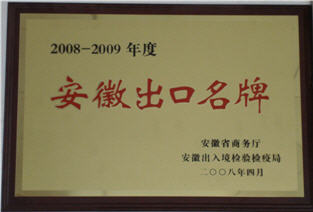 日前,公司在安徽省商務廳領到安徽省出口名牌獎牌,在企業眾多的榮譽家族中新添一成員。